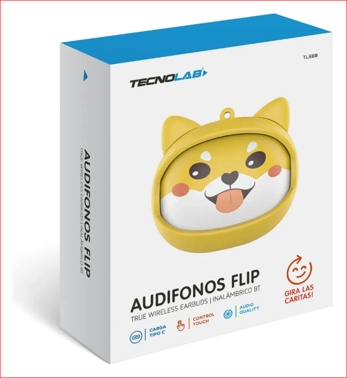 Lleva tu música a todas partes con los Audífonos Flip Tecnolab inalámbricos BT, pensados para quienes buscan comodidad y un diseño fuera de lo común. Este modelo destaca por su estuche decorativo con diseño de perrito amarillo y carita giratoria, entregando un estilo alegre, juvenil y llamativo.